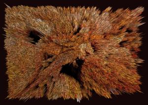Mit seinem Suchbild (Montagen und Extrudiertechnik) kann man viel Zeit verbringen, bis man endgültig alle Details des eingebetteten Aktes entdeckt hat.